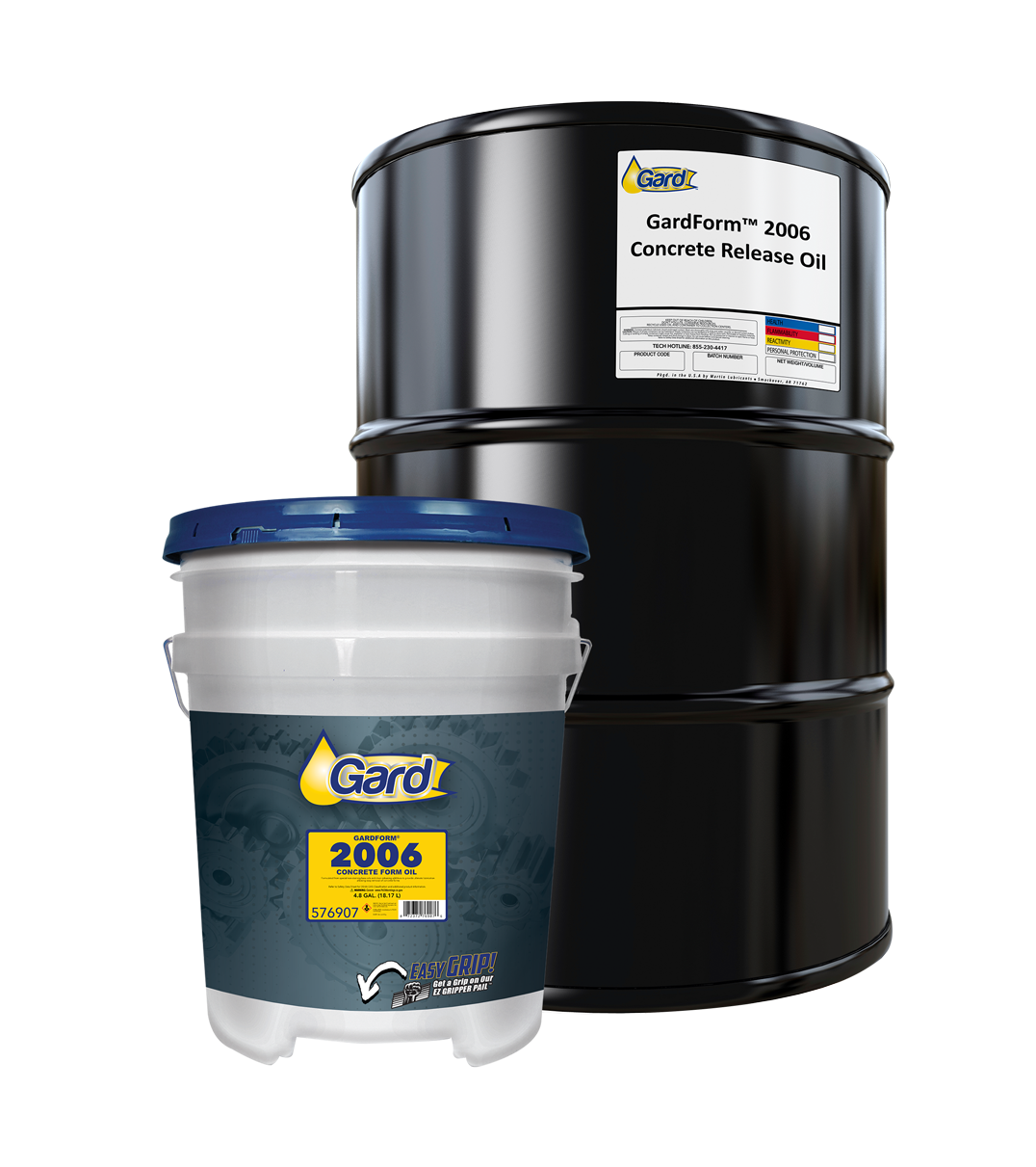 Gard™ Concrete Release Oil is formulated from special non-staining base oils and clean releasing additives to provide ultimate lubrication allowing easy removal of concrete forms in highway, bridge, and precast concrete manufacturing applications.